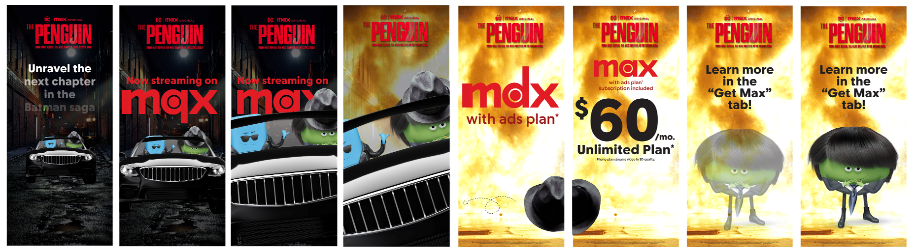 Utilizing assets provided by Warner Brothers, I was directed to storyboard a video that would live in the Cricket Explore experience within devices in-store that promoted the latest installment in the Batman sequel, The Penguin. The aim was to keep it playfully Cricket and yet also PG-13 (as The Penguin features some darker elements).