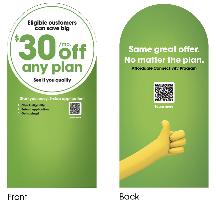 Design an in-store fixture dedicated to the learning and housing of Affordable Connectivity Program brochures.